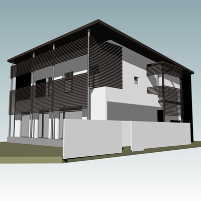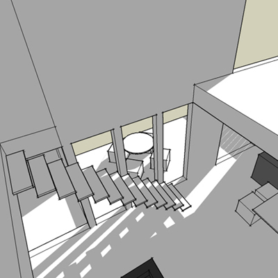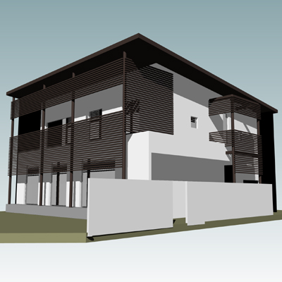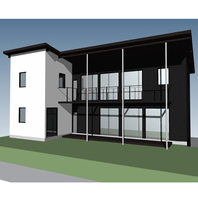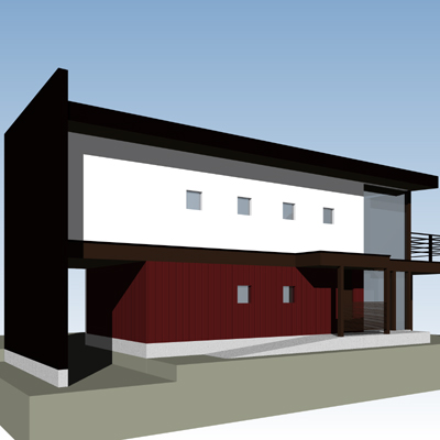 ■ CGプレゼ ・ 完成予想を見るのは心躍る瞬間ですが、 模型やスケッチに加えて CGも多用するようにしています。 これは施主に見せるだけでなく 設計者自身としての確認作業でもあります。 ←O邸当初イメージ |