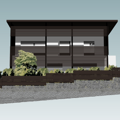 前面の斜面道路に対する 塀のデザインなんかも検討しました。 |