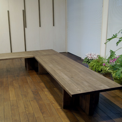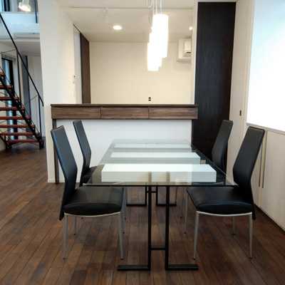 ■ ファニチャーデザイン ・家という建築物はそのままでは箱にしか過ぎません。 中で暮らす人たちがいて初めて家になるのだと思います。 生活する時に大切なのは家具ですが、 これを一緒に選んだり、時にはデザインして作ってしまったりもします。 ←E邸のダイニングテーブルは完全オリジナルです。 |