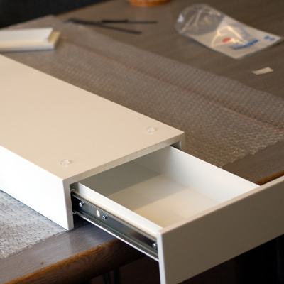 天板のガラスを支える構造部材が引き出しになっています。 |