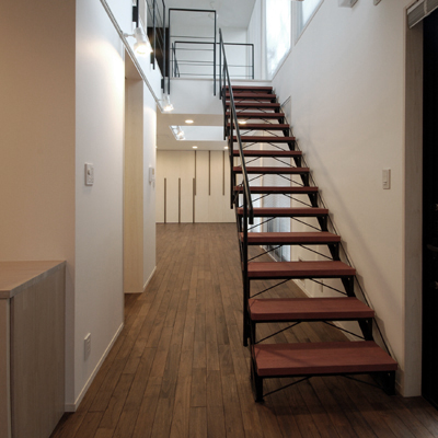 ■ 決めていく楽しさ ・ もちろん全て設計者におまかせというのもいいと思いますが、 時には一緒に話して決めていくと言うのも楽しいものです。 理屈ぬきでこの色が好きとかいう方もいらっしゃるでしょう。 もちろんデザイン的に絶対に合わないという場合は その旨遠慮なく進言させていただきます^^。 施主と設計者のがそこまでの関係になっている事が 大切だと思います。 ←階段の赤色は施主からの提案です^^。 |