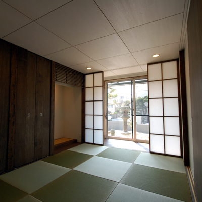 ■ 既存部材利用 ・ 既存の建物を解体しての建替え時など廃材がたくさん出ます。 この廃材を利用すれば材料費が安く上がるかと言えば、 逆に手間が増えてそうでもなかったりします^^;。 しかしながらそこに建っていた家に暮らした日々を 記憶している材料を時には再利用したりもしています。 ←この床框(床の間の段のところ)は既存建物の玄関框を再利用しました。 |