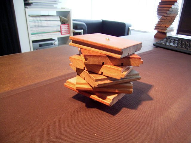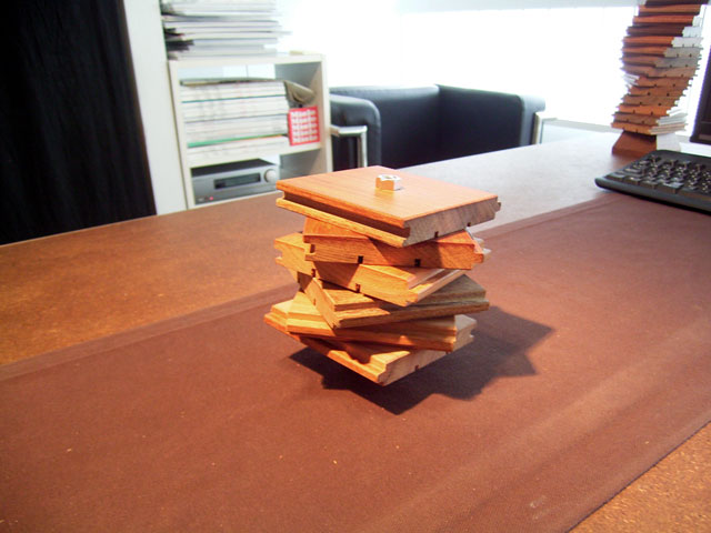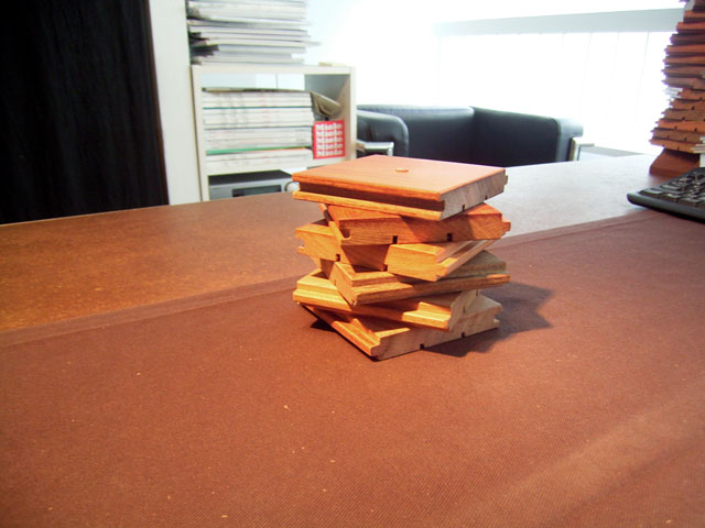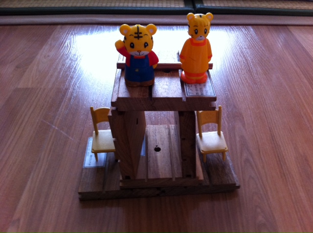| HI邸の現場打ち合わせで初めて6枚組バージョンをプレゼントさせてもらいました^^。 お子様の遊び道具になっているようです。 ![]() これは施主の解説によると家なんだそうです。 家をモチーフに選んでくれたあたりが嬉しい限りです^^。 |