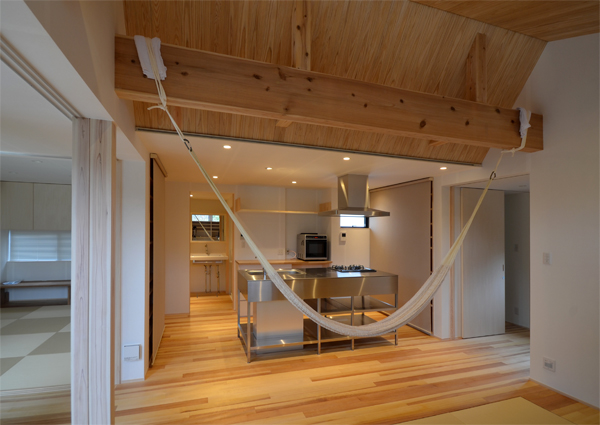 ![]() この家もきっと進化し続けることでしょう・・・。 キッチン脇の収納にはロールスクリーンがかけられ、表しの梁にはハンモックが吊るされました^^。 キッチンの背面台には電子コンベック(電子レンジとガスオーブンが一体化したもの)が置かれています。 |