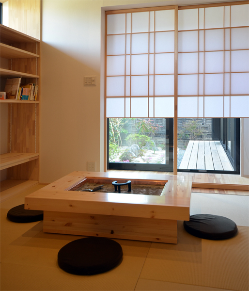 ![]() 囲炉裏は固定ではなく可動式です^^。 雪見障子は庭だけが切り取って見れるのがいいですね。 写真の五徳の置き方は上下逆でした。みなさんお間違えの無きよう^^;。 |