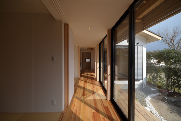 ![]() 縁側兼廊下です。 東南向きなので午前中の光がたっぷり入ります。 逆に午後は光の当たった遠景が楽しめます。 |