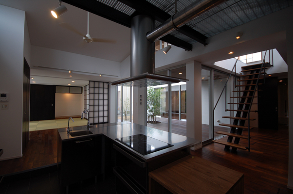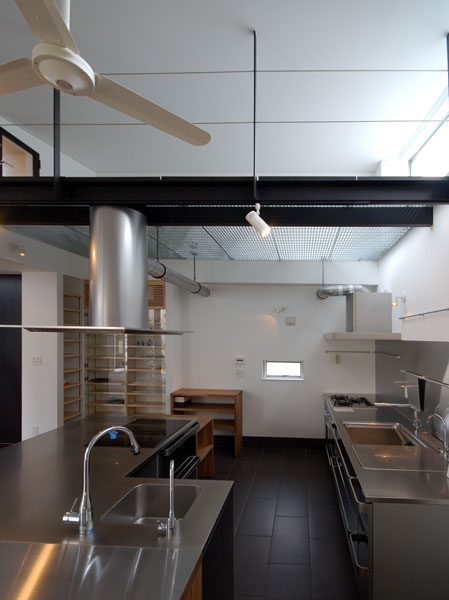 ![]() 普通のキッチンの2倍はあります。上をグレーチング敷のロフトにしたのは施主のアイデアです。 |