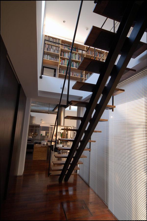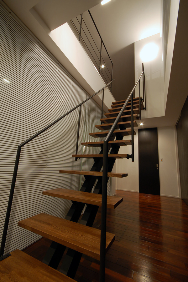 ![]() スケルトン階段を正面側から写してみました。 ブラインドを上げれば中庭への視線の抜けがいいのです^^。 |