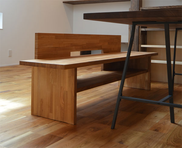 ![]() ベンチは完全オリジナルです。施主の中学時代の同級生さんが造ってくれました^^ 背もたれは奥様の希望で付けています。座面の下には雑誌や新聞を入れておけます。 |