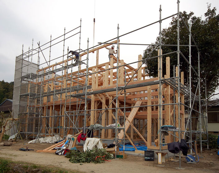 上棟しました^^。柱はヒノキです。いい香りがします^^。 |