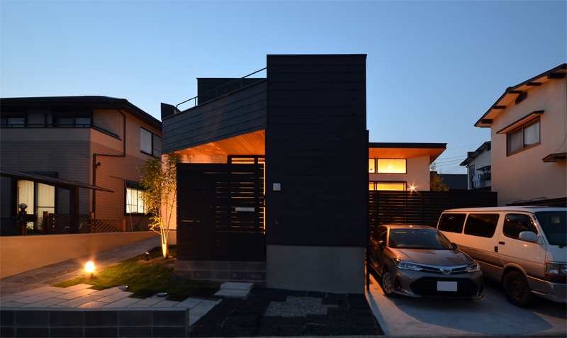![]() 外観正面からの夜景です^^ アプローチはコンクリート平板と芝生のグラデーション的な緩いスロープ 道路境界沿いには黒いコンクリートブロック積(現在商品開発中^^;) |