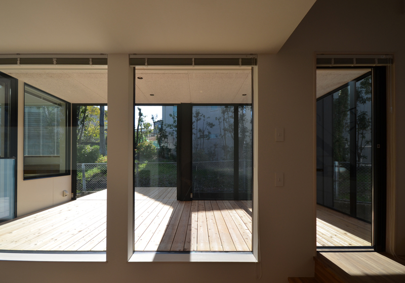![]() 左側に見えるのはお子さんのスタディコーナーです。机からアウトドアリビングが見えます。 |