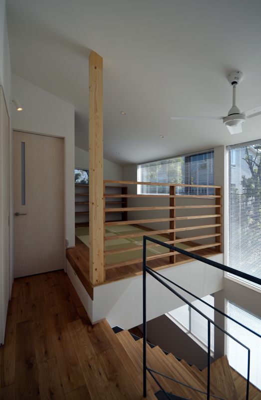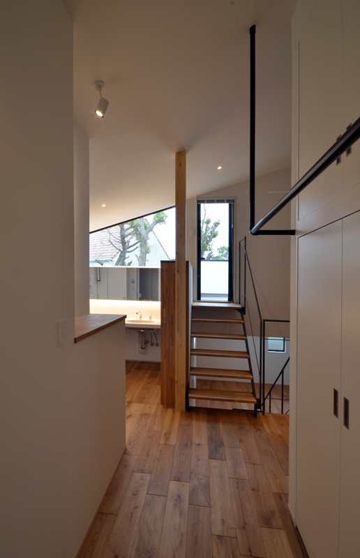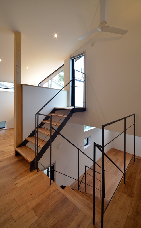 ![]() リビングから半階上がって2階に行けます。 更に半階上がるとルーフバルコニーに出られます。 |