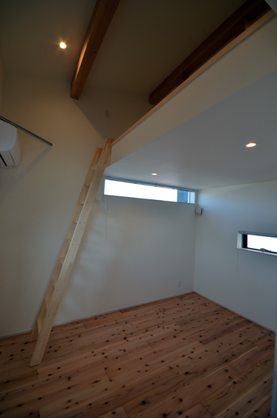 主寝室もロフト付^^。 細長の窓は東向きで朝日を採り込みます。 |