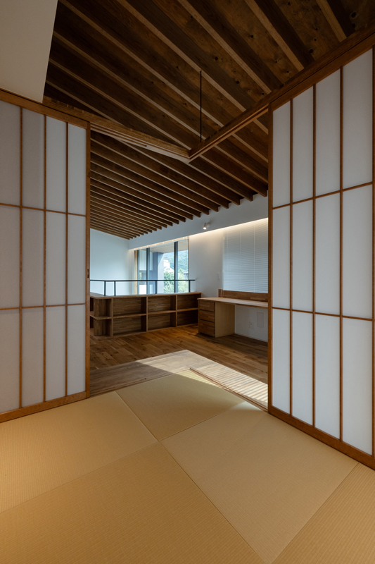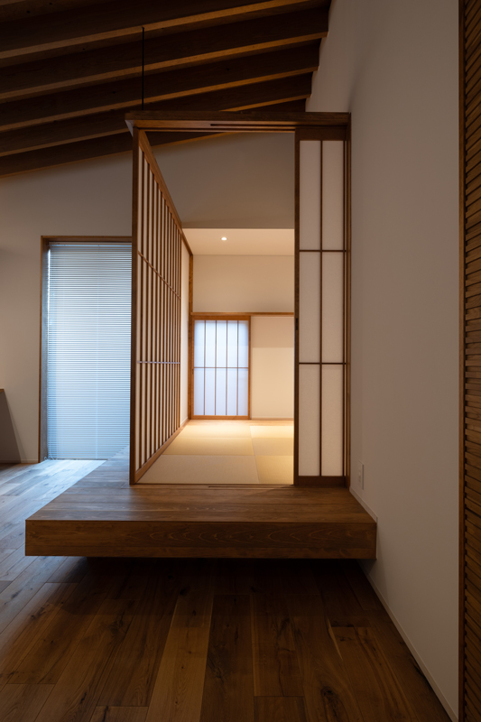 ![]() 天井の流れを区切ることなく、小上がりの畳スペースを設けました。 |