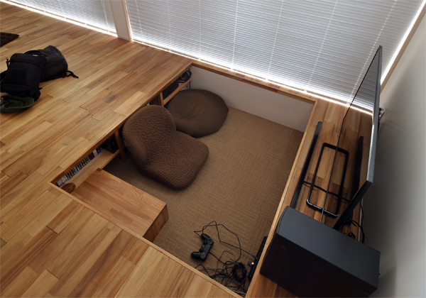 ![]() 掘り込みリビングは本当は縁に座る想定なんですが、穴倉的に中に籠ることが多いそうです^^;。 でも居心地よさそう^^。 |