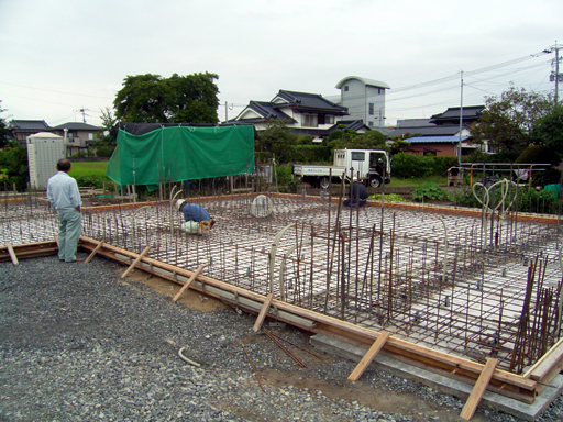 杭工事、基礎工事と終わって写真は土間配筋中のものです。