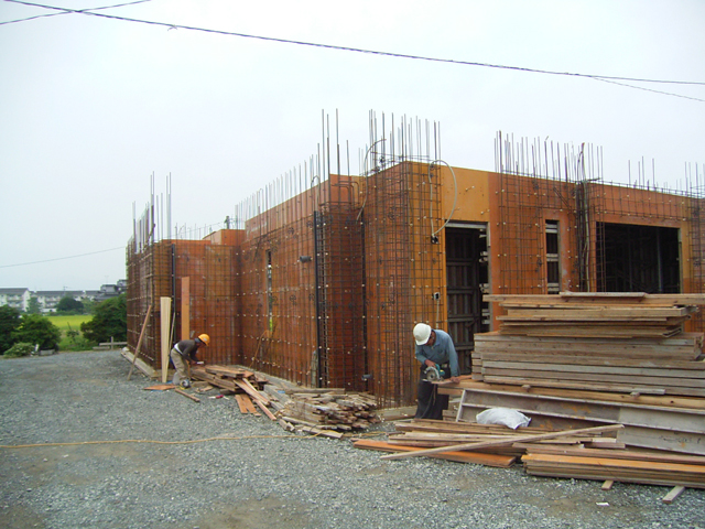 土間が終わればいよいよ地上部分の配筋と型枠が始まります^^。 |