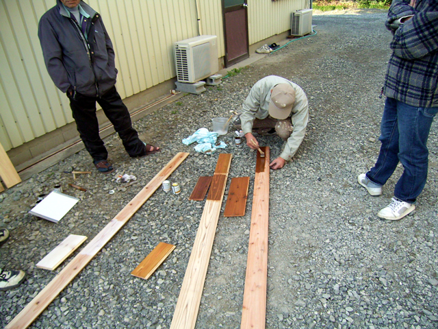 床は杉なんですがオスモを試し塗り中。同じ杉でもものによって吸い込みやノリが全然違います。