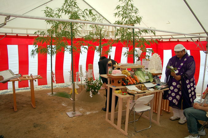 | 地鎮祭は珍しく仏式でした。キリスト教式というのもあるそうですが、私はまだ経験はありません^^;。 |