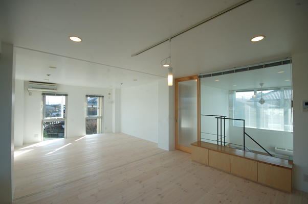 ![]() ![]() ![]() どうしても南側に玄関を・・・という条件がありましたので、リビングは2層吹抜として 南側玄関の上から採光をとりました。 ![]() 2世帯住宅ですがキッチンダイニングはみんなで集まれる広さをとっています。 床フローリングは杉の無垢板にオスモです。 ![]() 2階若夫婦世帯のLDKです。将来は間仕切って子供部屋になります。 床はパインの無垢フローリングにオスモ。 ![]() 2階にも小さな洗面スペースがあります。 ![]() 1階の仏間とリビングは一体利用できます。 ![]() 1階の個室は全て畳の部屋になっています。 ![]() 竣工祝いのパネルはとりあえず玄関ホールに飾らせていただきました。 ![]() 外観はモノトーンベースです。 ![]() 二丁掛タイルは縦と横で目地巾を変えてもらっています。 ![]() タイルは一部裏側まで回りこんでいます^^。 ![]() どうしても大きい窓にはシャッターをつけて欲しいということでボックスを隠すのに苦労しました^^;。 外壁の塗料は超低汚染仕様のものを使っています。 白が使いやすい世の中になりました。 ![]() 外観は仰っているような写真が多いですが好きでそうしているわけではなく、 敷地は広いんですが周りを納屋などに囲まれているのです^^;。 北側は抜けていて景観が素晴らしいです。 この景観をどう生かすかがテーマでもありました。 |