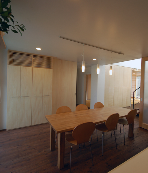 | 2世帯同居の鉄筋コンクリート造住宅です。 水周りを共有する部分分離型に近い形です。 若夫婦用の独立したサブキッチンとサブリビングもあります。 |