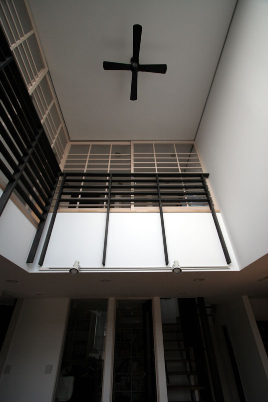 吹抜けには空調効率を考えてシーリングファンを設けています。