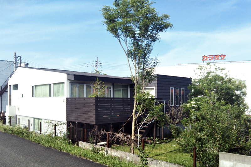 施主が自分で整備されている外構がいい感じです。まるで別荘地のような趣です。 |