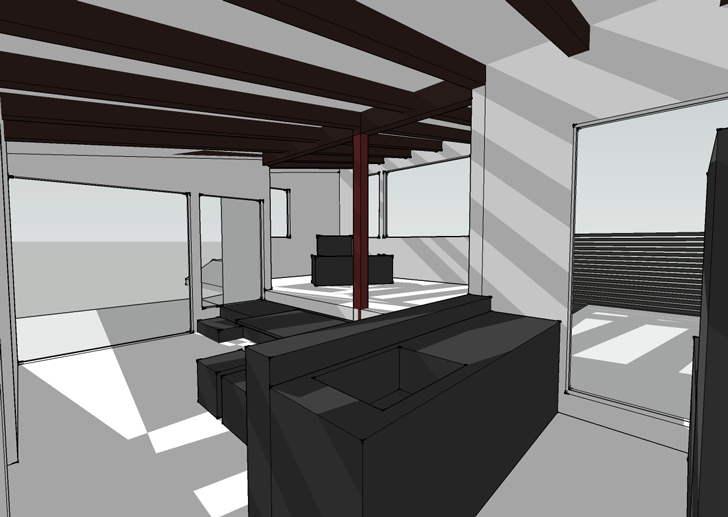 また、床を上げることで川の土手からの見下ろしを防いでいます。