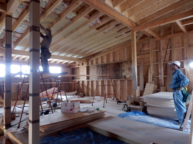 中間検査も終わって内装の下地造りに取り掛かっています^^。 |