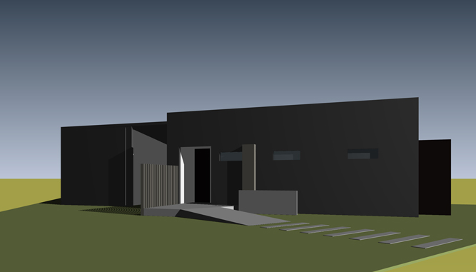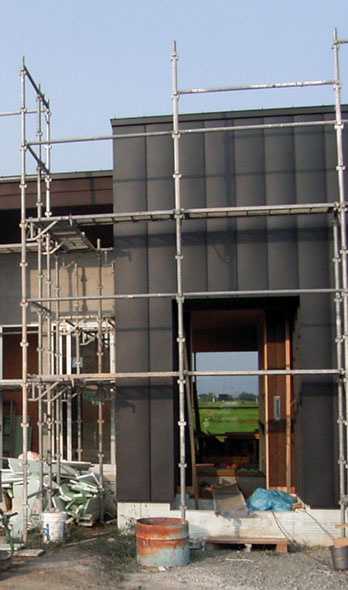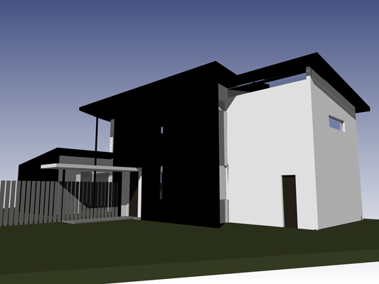 外観イメージ。屋根材を壁面にまでおとしてみました。