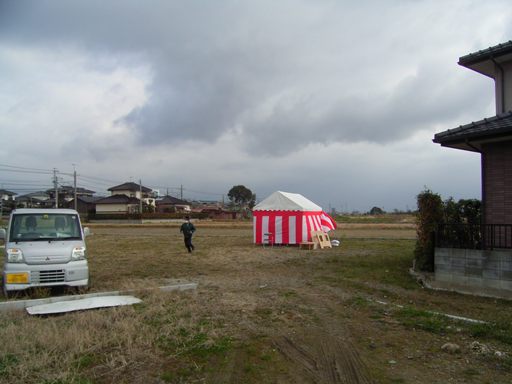 地鎮祭準備中。改めて見てもすごい敷地です。大草原?に建つ家ですね^^。 |