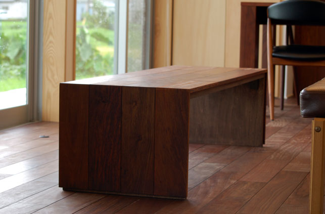 ![]() あまった床材でソファー前のセンターテーブルを作ってもらいました。工務店からの竣工祝いとなりました^^。 |