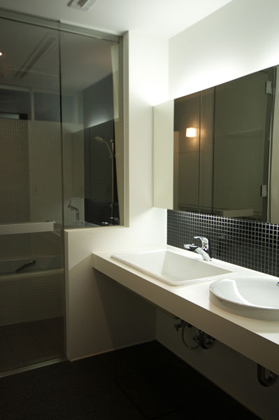 ![]() 洗面には実用性と価格バランスで実験用流しを採用しました。 |