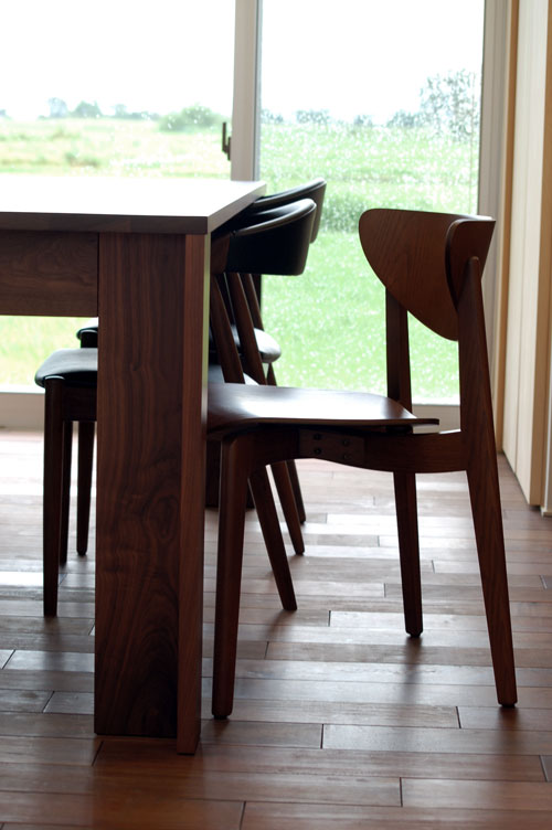 ![]() テーブルはオリジナルデザインです。ウォールナットで施主の友人が作ってくれました。 |