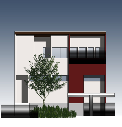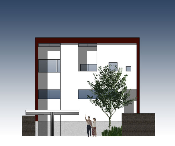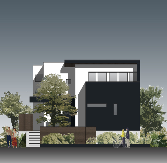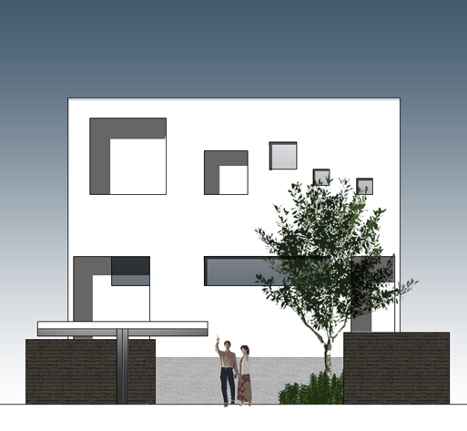 ファザードはガルバリウム鋼板と塗り壁の組み合わせで、若干軒先が出ている形になりそうです。