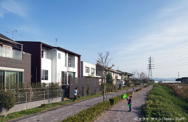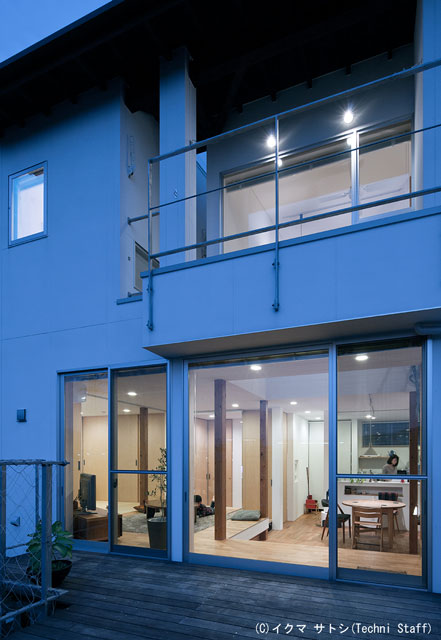 ![]() 外のデッキは1階の高い方の床レベルに合わせています。 で、川沿いの遊歩道を行く人から中は見えずに、中からは外の景色が楽しめるのです。 2階のバルコニー手摺がゴツイのは布団が干せるように考えてのことです^^。 |
