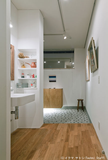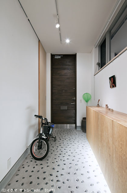 ![]() 玄関の踏込は大きくとってギャラリースペースになっています。 これからどんどん展示作品が増えていくのでしょう。 石埋め込みは奥様のリクエストです。かわいい感じですね^^。 |