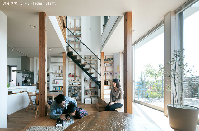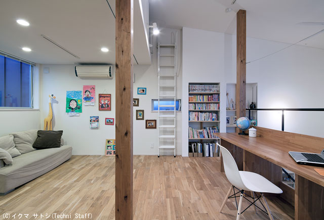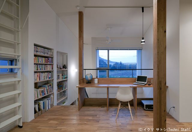 ![]() 2階の吹抜に面してスタディーコーナーがあります。外の景色が楽しめます。 |