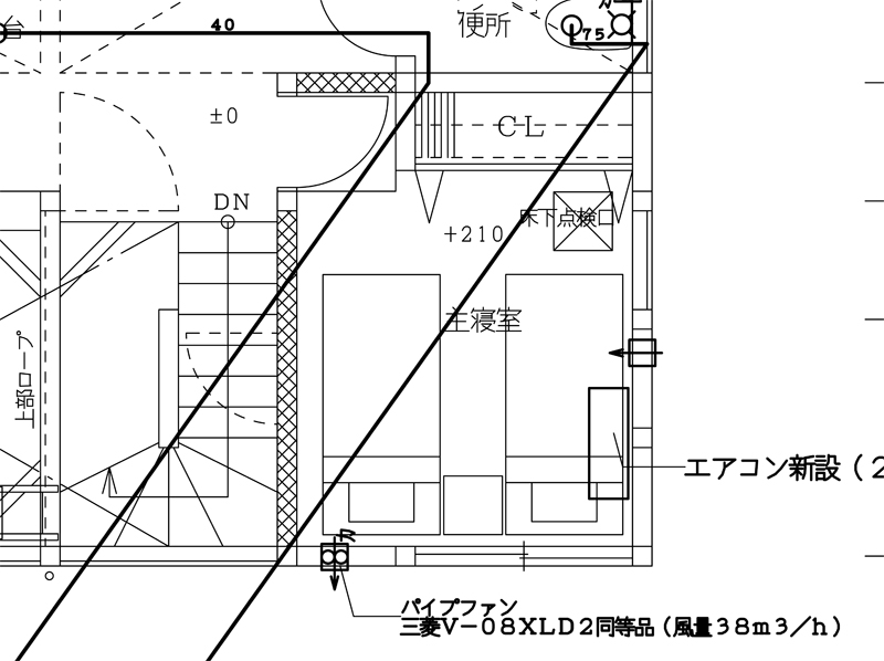 しかし私の設計する家では多くの場合主寝室だけはそれとは別に、給気と排気を独立させています。