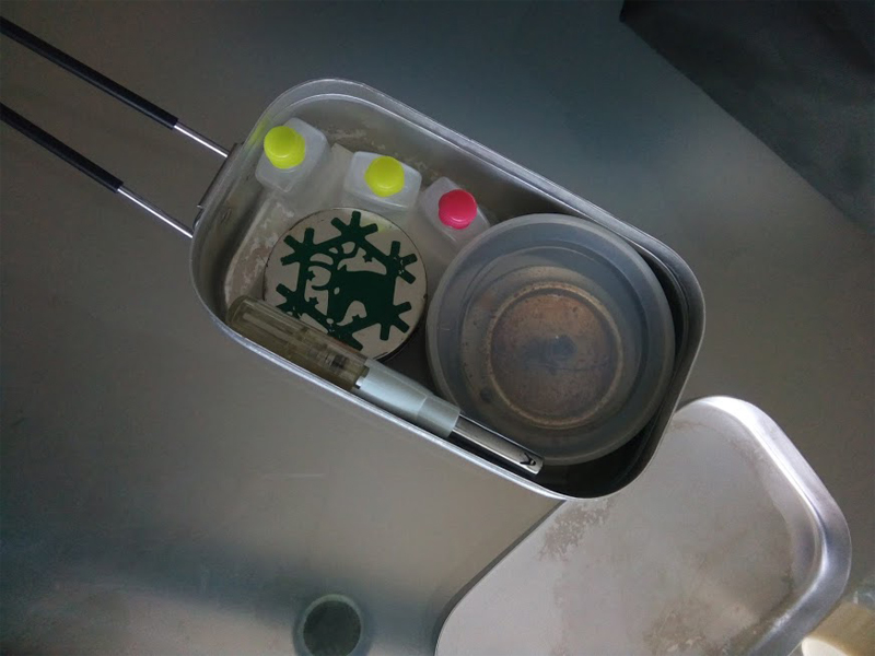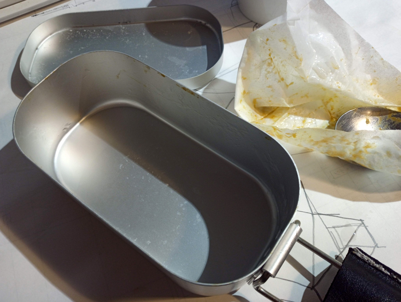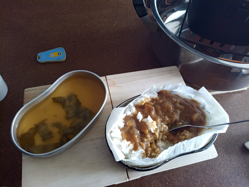 ダイソーメスティンを入手したので、メスティン折で一合炊けるか検証してみました。![]() 焚けますねー^^でもなかなかのギリギリっぷりです。炊き込みご飯とかは米の量減らさないと厳しそう^^;。 ![]() カレーを食べましたが少しずつルーをかけても溢れんばかりで 縁がちょっと汚れてしまいました。 しかし炊飯自体はバッチリです^^。 ダイソーメスティン折型紙はこちらです^^ |