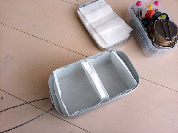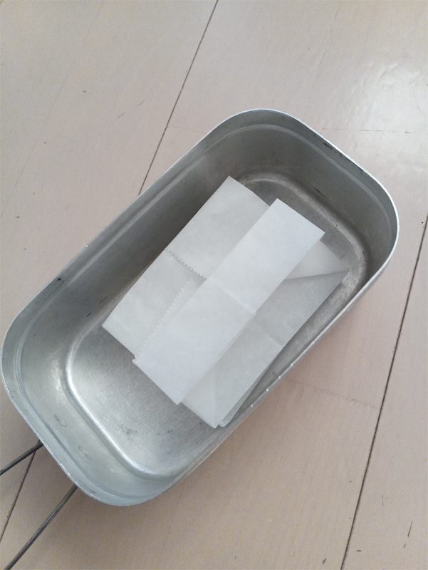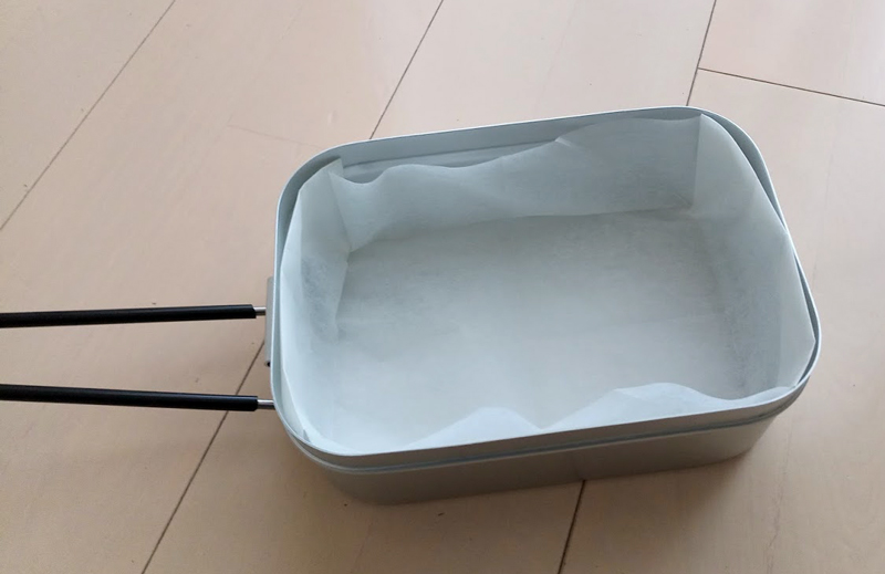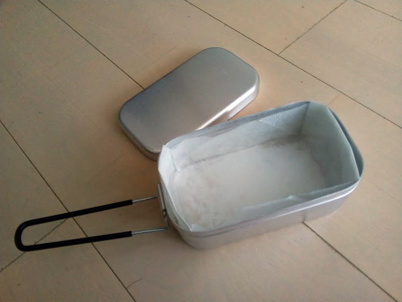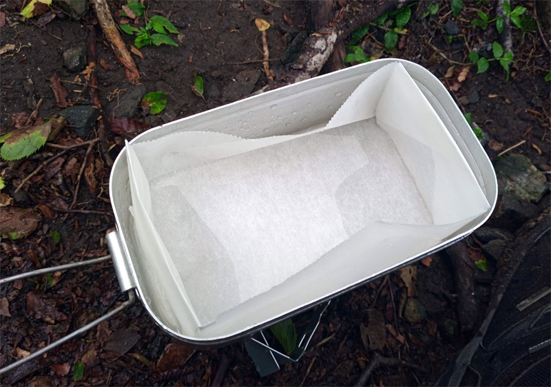 メスティンでの炊飯時にいかにして後片付けを楽にするか・・・。メスティンにピッタリ入るクッキングシートの折り方です^^ これをメスティン折と名付けました。山での連泊時などには大変有用かと思います^^。 折り方の原理は昔からある箱折と同じですが(特に型紙なしバージョン)、市販されている30cm幅(又は25cm幅)のシートを 余すことなくメスティンに合わせられるところがミソです^^。あとスタッキングですね。必要な枚数を畳んで持ち運べます。 ![]() この歳になってあれですが、先日誕生日プレゼントにメスティンを頂きました^^。 一般には聞きなれない名前ですが、アウトドア好きなら誰もが知っている飯盒です。 ご飯を炊くだけでなくその用途は多岐に渡りますがその特徴は・・・ ・アルミ製なので熱伝導率が高く炊飯時焦げ付きにくい ・形が四角いので収納効率がいい ・蓋の密封性が高く、ある程度容器内の気圧を上げて炊くことができる。 など、炊飯に限って言っても素晴らしいの一言なんですが、一度炊くと容器の掃除が大変なのは一緒です^^;。 対策としてテフロン加工している人や、炊飯のあとスープなどを煮立てて掃除する人なんかがいますが、 クッキングシートを敷いて炊飯している人をネットで見かけたので実験してみました^^。 ![]() 私は米はワンカップ焼酎の容器で持参することが多いです。シェイカーみたいに米を研ぐことができます。 炊飯時の熱源はアルコールストーブを使うことが多いです。とろ火のときはガスより調整が楽かも^^。 炊飯しながらガスバーナーではおかずを調理することも出来ます。 ![]() 今回は手抜きでレトルトカレーを炊飯時メスティンの上に乗せて温めただけ^^;。 結果ご飯はかなりいい感じで炊けました。ついでにカレーもいい温め具合^^。 そうして狙い通り食事後の後片付けが簡単です。 さっとティッシュなどで拭きあげるだけで十分^^。 で、ここからが本題ですがクッキングシートを敷くにもそれなりに手間がかかったので、これを体系化して現地での時短を図れないかなと・・・・・ そこで下記のメスティン折を考案しました^^。 大きさはメスティンに合わせてあります。 ![]() 折りたためるので↓メスティンの中敷きにしておくといいかと思います。 ![]() 連泊するときは何枚か用意しておくといいのではないでしょうか? ![]() 私の場合他に自作のアルコールストーブとたれ瓶に入れたアルコール燃料、ライターなんかを入れておこうかと思います。 (ストーブは先日メザシを網で焼いたので汚れてしまってます・・・^^;) ![]() ちなみに丸い缶は五徳と炎の高さを調整するためにアルコールストーブの下に敷く台に使ってます。 折り方は↓こちら^^ 今回は30cm幅のクッキングシートを使っていますが、25cmにも縦横逆で応用できるかと思います^^ ※実践動画を見かけましたが最後のあたりがうまく伝わっていないようなので加筆しました^^;(2019年2月) ![]() pdfはこちら^^ 四角い形状のメスティンならではと思います^^ |