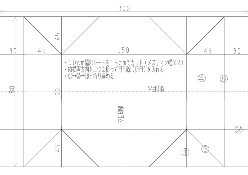 ![]() トライアルでラージサイズをゲットしたので、自分用に新たに型紙なしのバージョンを考案しました。 @とAは目印に折目をつけるだけで、慣れた人には説明は不要だと思います^^。 しかしトライルのラージ税込998円は驚愕ですね^^。 |